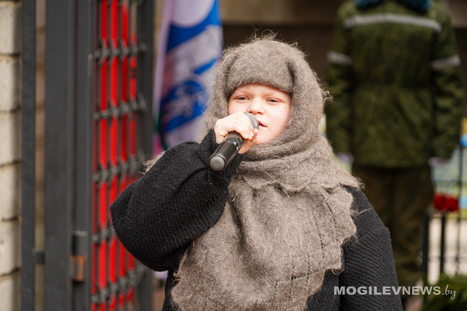 Маргарита Василькова ГУДО «Центр творчества «Эверест» г. Могилева» прочла стихотворение «Детский ботинок», написанное Сергеем Михалковым под впечатлениями от посещения освобожденного концентрационного лагеря. В лагере «Майданек», освобожденном летом 1944 года, был обнаружен склад, где хранилась обувь, в том числе детская. Каждый ботинок на этом складе — это история смерти от рук фашистов.