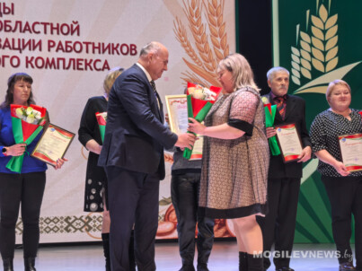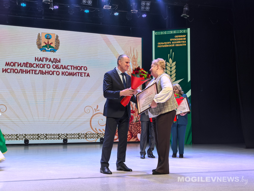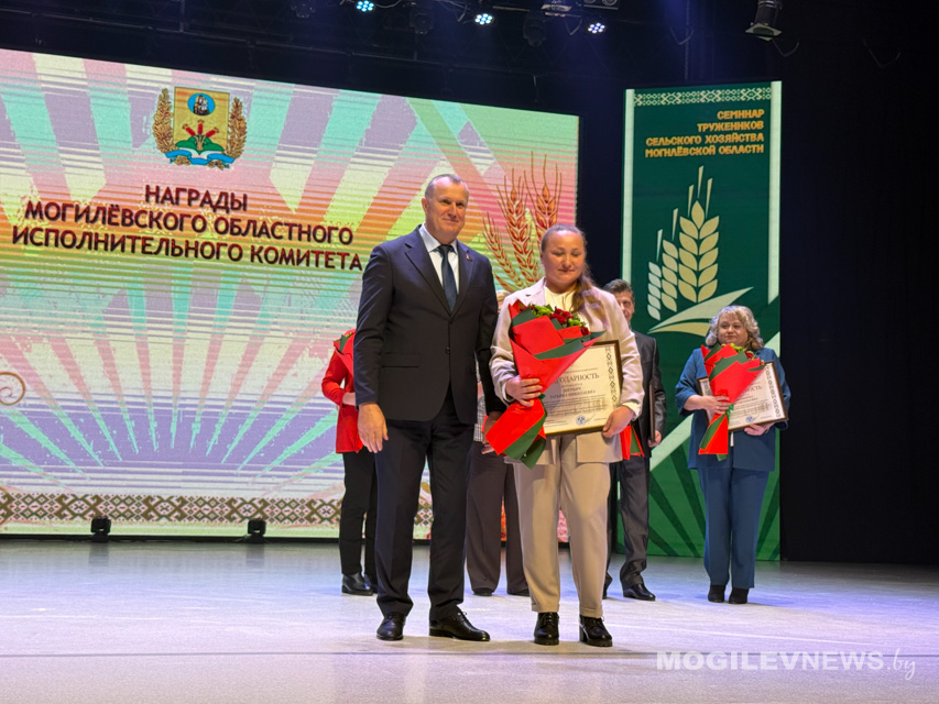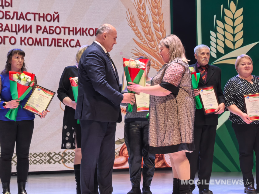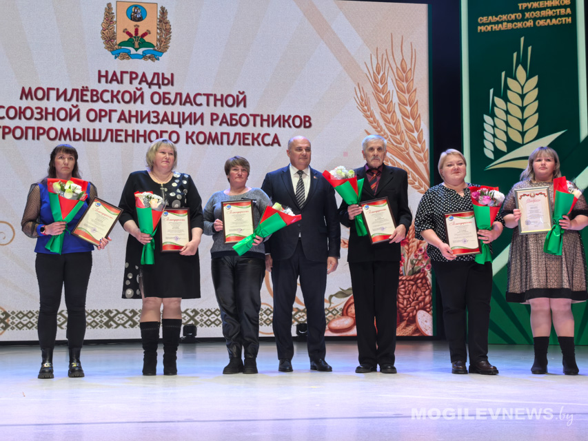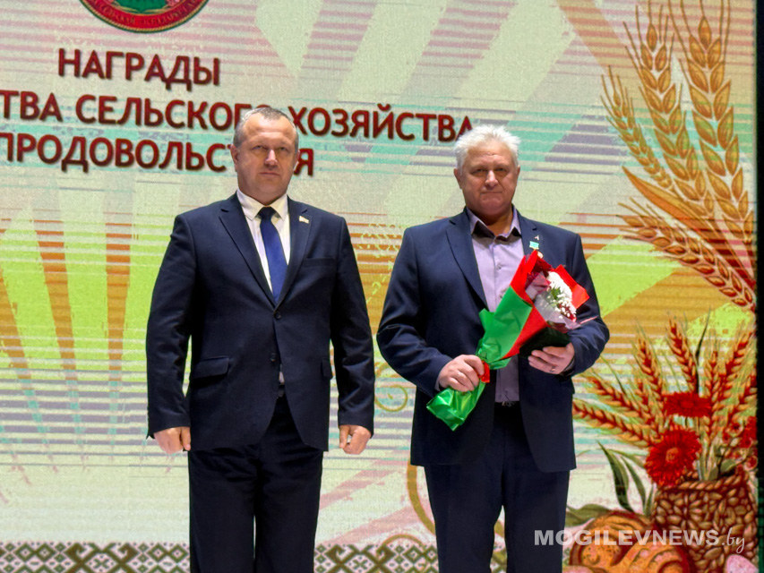 Также награды труженикам АПК вручили заместитель министра сельского хозяйства и продовольствия Республики Беларусь, директор Департамента ветеринарного и продовольственного надзора Иван Смильгинь, заместитель генерального директора по экономике и финансовой работе Могилевского государственного объединения «Мясомолпром» Наталья Дудина, председатель Могилевской областной профсоюзной организации Белорусского профсоюза работников агропромышленного комплекса Владимир Петрович.