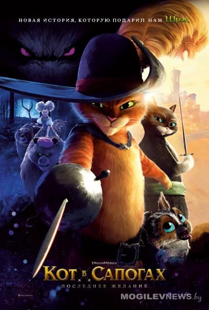 «Кот в сапогах 2: Последнее желание» (США, 2022, анимация; Храбрый и обаятельный Кот в сапогах из «Шрека» не упустит случая воспользоваться шпагой, чтобы дать отпор врагам и ввязаться в опасное приключение. Но у риска есть своя цена, и однажды он обнаруживает, что уже истратил восемь из девяти жизней. Как же распорядиться последней? Пушистый герой отправляется в невероятное путешествие, чтобы вернуть себе потерянное время).