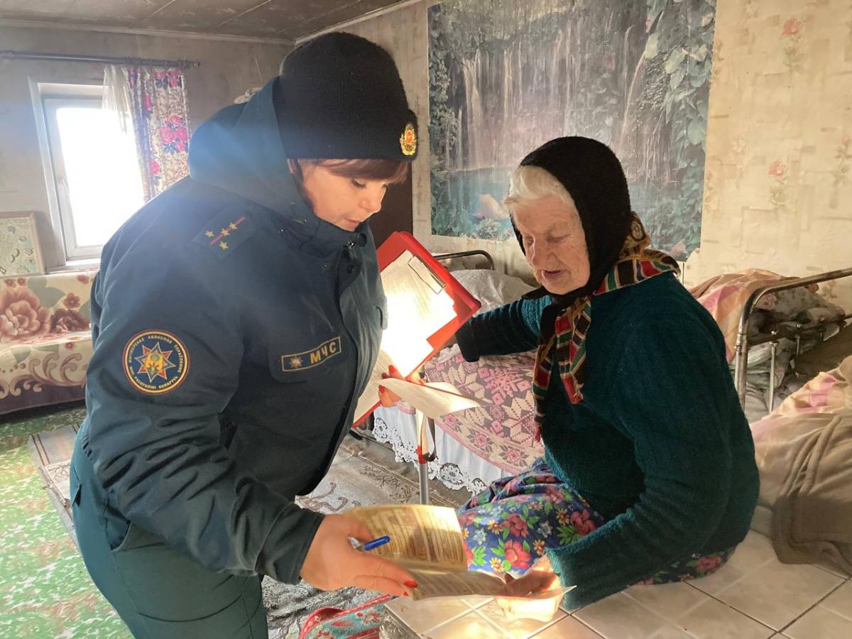 Во время посещения домовладений представитель МЧС также обращала особое внимание на условия проживания граждан. С хозяевами домов проводились профилактические беседы, в ходе которых инспектор МЧС напоминала основные правила пожарной безопасности в быту, при эксплуатации печного оборудования, а также вручала памятки по приведению домовладений в пожаробезопасное состояние.