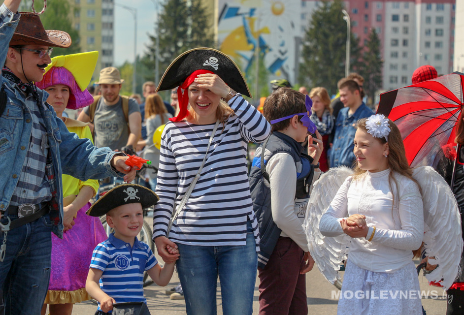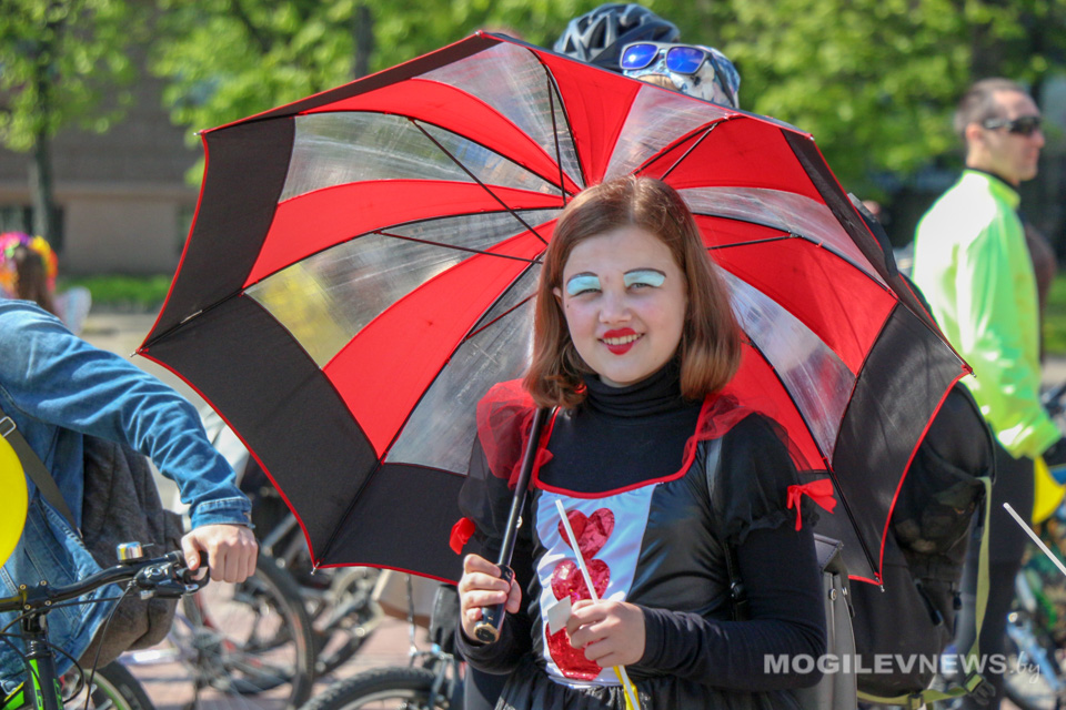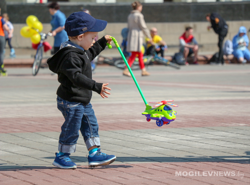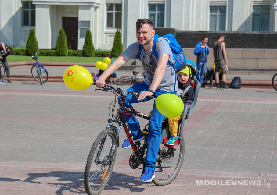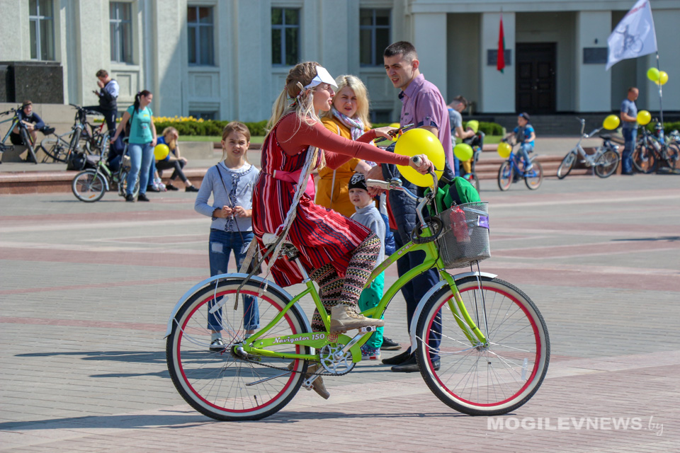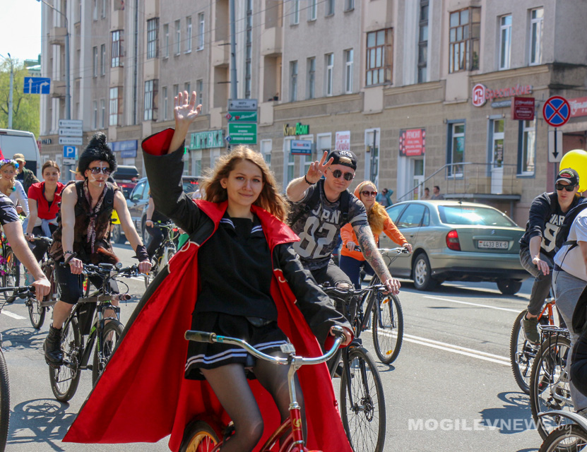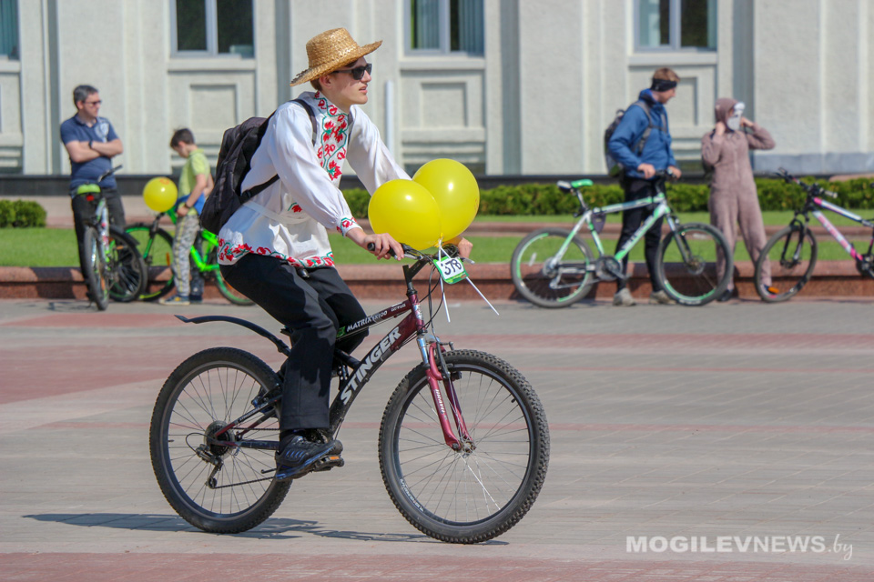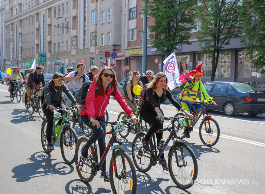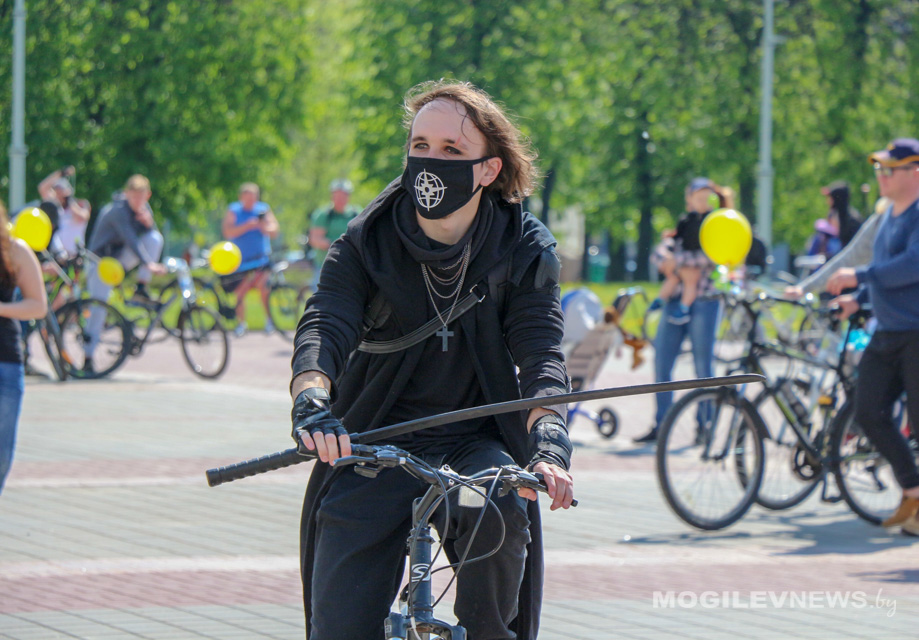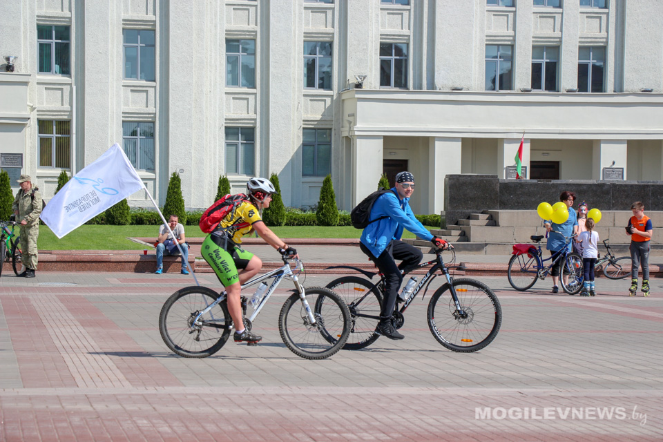 Участники Могилевского велокарнавала «ВелБелМай» проехали большой колонной на велосипедах, роликах и самокатах от площади Ленина до ТЦ «Парк-Сити».