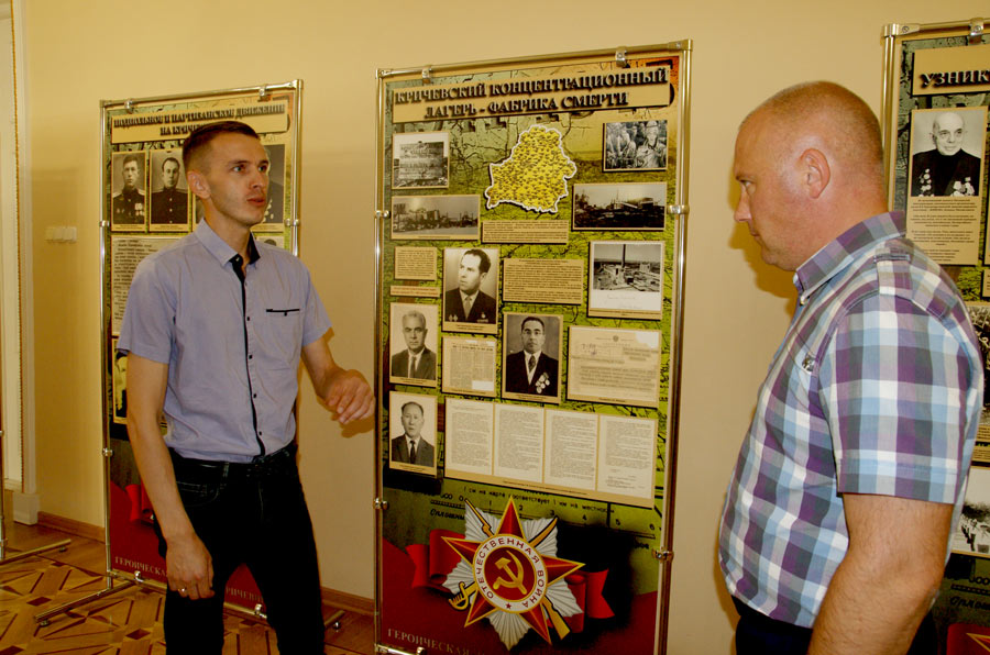 — Было подано со всей республики 500 заявок. Только 18 из них стали победителями (4 по Могилевской области). Отрадно, что мы тоже — в числе лучших, — уточняет председатель Молодежного парламента Кричевского района, директор музея Владимир Мищенко.— В этой мобильной экспозиции представлено 10 информационных планшетов, охвачены все периоды Великой Отечественной войны и личности, которые в период войны проявили особое мужество и героизм. Собрано много документов, фотографий, карт. Всего более двадцати тысяч экспонатов.