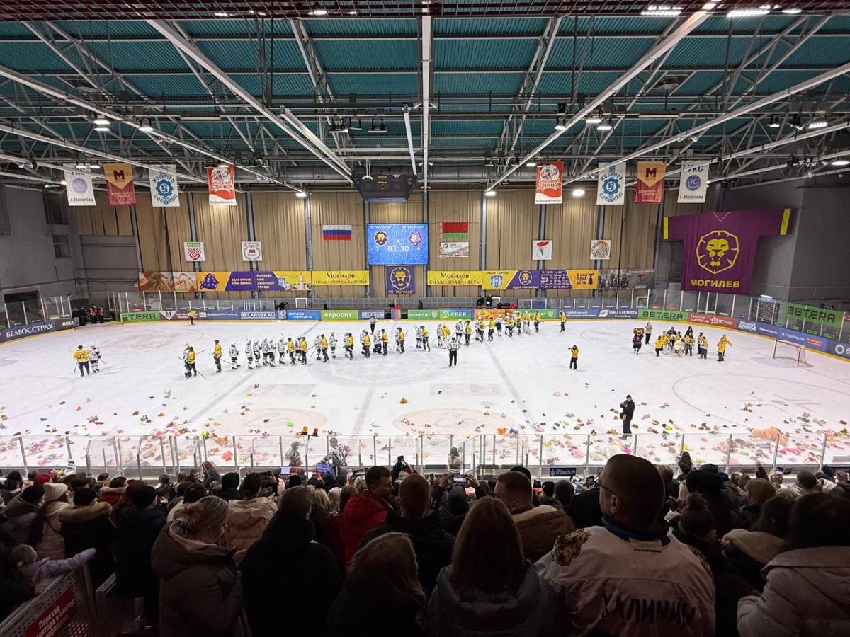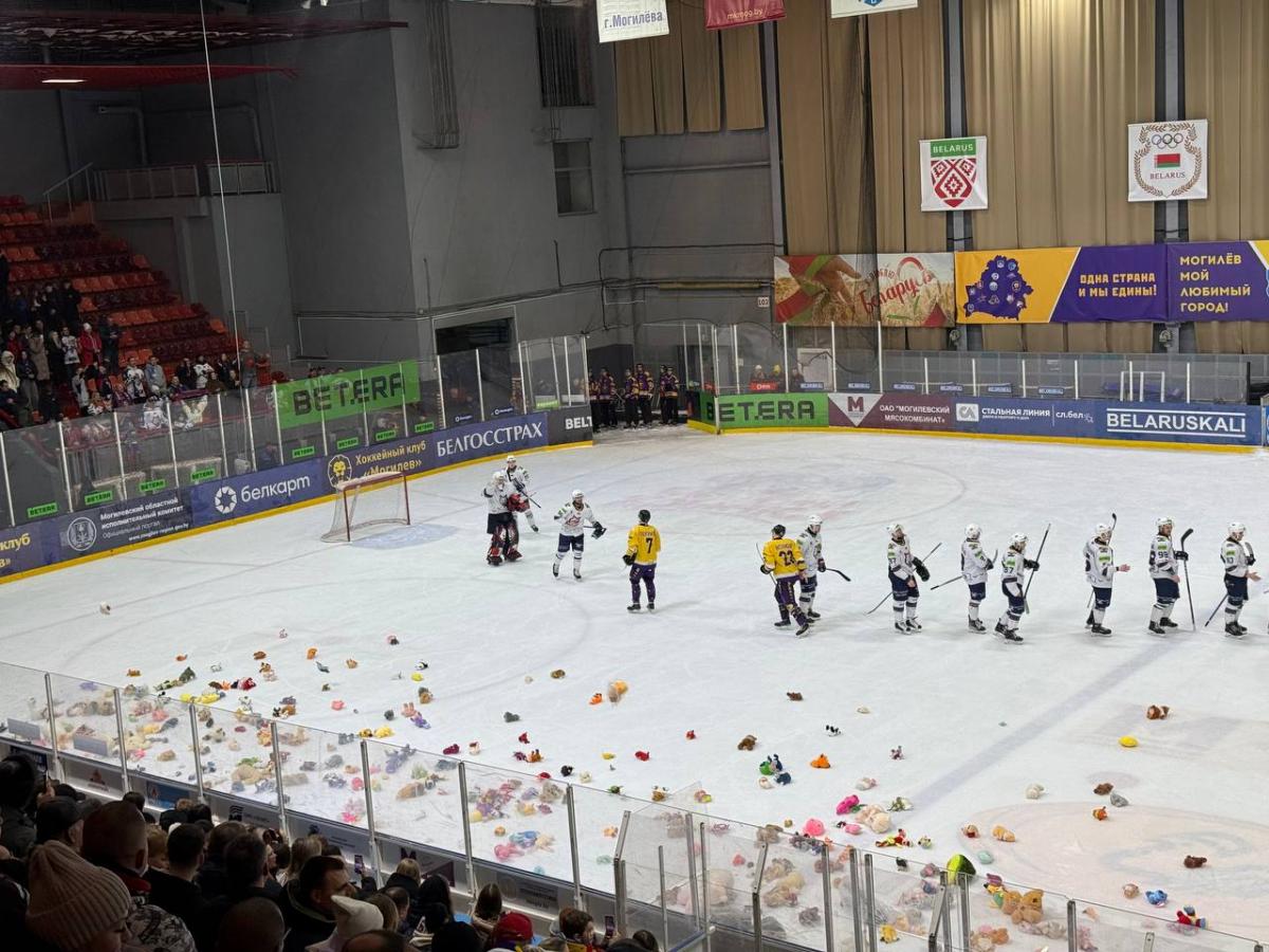 Отметим, что по завершению встречи состоялся большой МИШКОПАД. Сотни мягких игрушек от могилевских болельщиков буквально устлали ледовую арену по окончании матча между «Могилевом» и «Металлургом». Все собранные игрушки отправились на благотворительность.