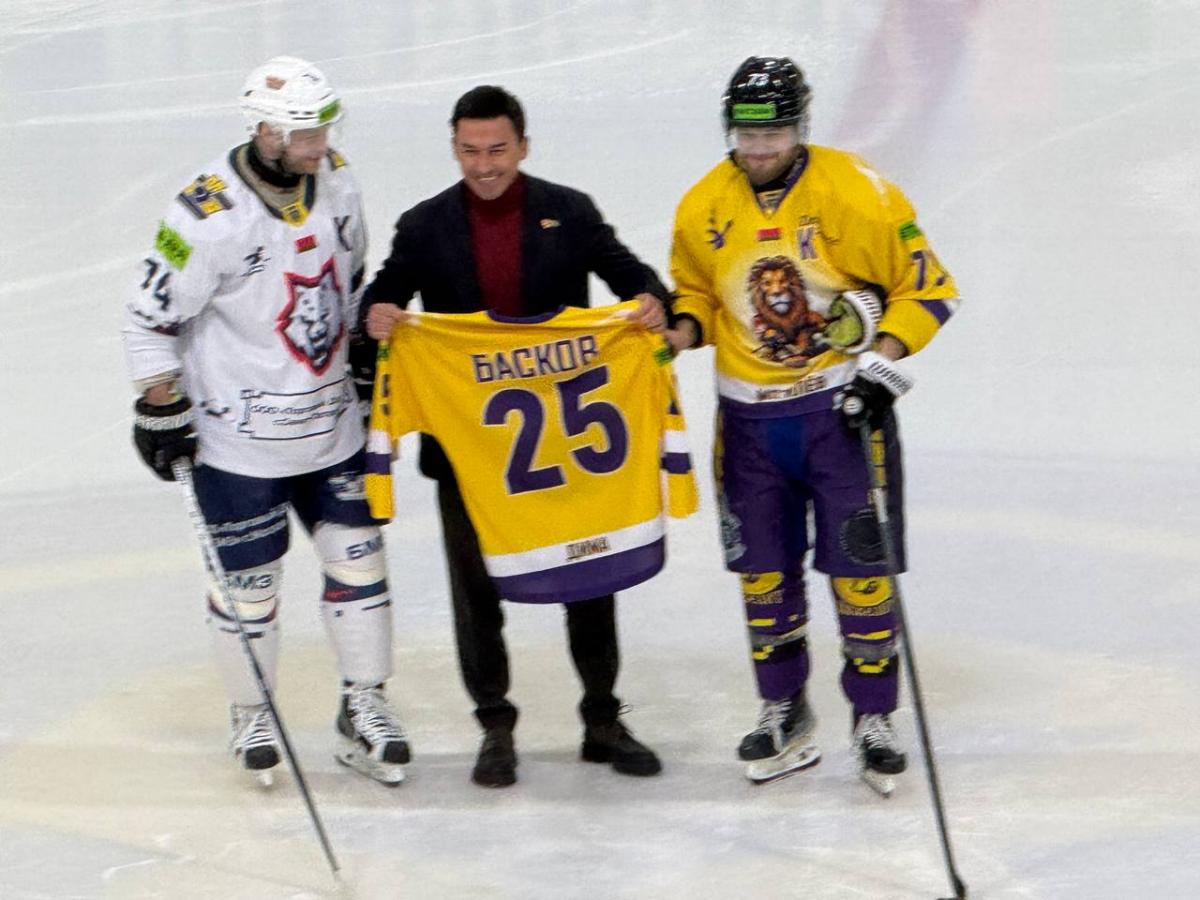 Символическое вбрасывание перед началом матча совершил член Совета Республики Национального собрания Республики Беларусь, главный тренер хоккейной команды Президента Республики Беларусь Дмитрий Басков.