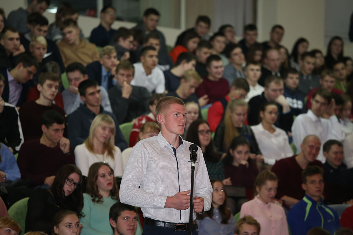 Завершилось общение в формате «вопрос-ответ». Студенты и преподаватели академии спросили у губернатора о льготах для молодых специалистов, проживающих в сельской местности. Также участники встречи интересовались перспективой возобновления в академии военной кафедры, отношением к молодежи, которая выдвигает свои кандидатуры на выборы депутатов Палаты представителей Национального собрания, дальнейшими планами по реализации Программы социально-экономического развития юго-восточного региона Могилевской области.