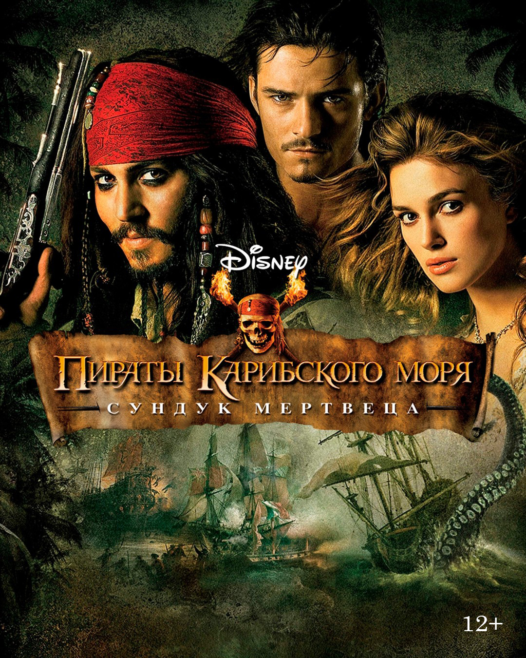 «Пираты Карибского моря: Проклятие Черной жемчужины» (США, 2006, фэнтези, боевик, приключения. Вновь оказавшись в ирреальном мире, лихой капитан Джек Воробей неожиданно узнает, что является должником легендарного капитана «Летучего Голландца» Дэйви Джонса. Джек должен в кратчайшие сроки решить эту проблему, иначе ему грозит вечное проклятие и рабское существование после смерти. Вдобавок ко всему, срывается свадьба Уилла Тернера и Элизабет Суонн, которые вынуждены составить Джеку компанию в его злоключениях…)