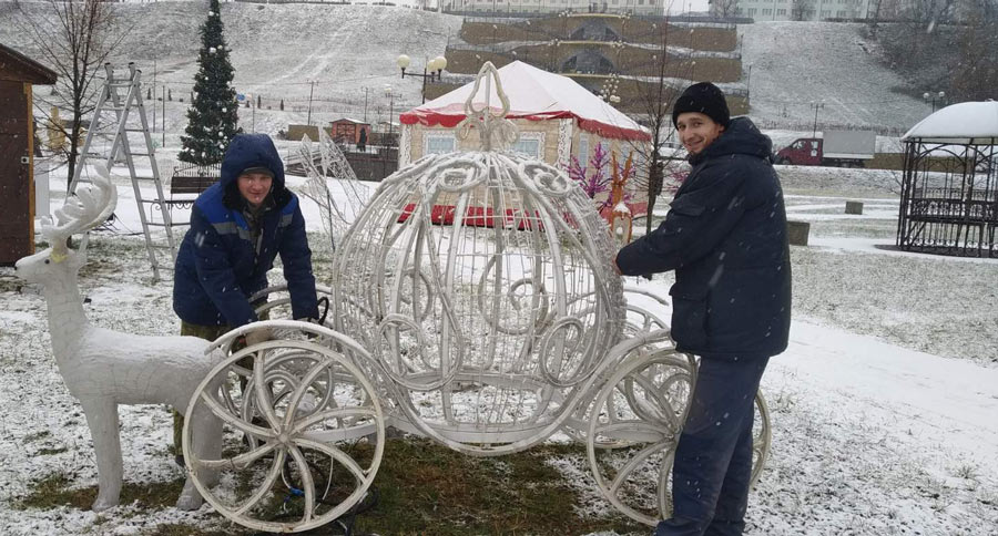 В парке Подниколье в Могилеве идут работы по праздничному оформлению тематических рождественских и новогодних площадок, которые создают сотрудники предприятий и организаций города. Все сказочные городки примут участие в городском конкурсе на лучшее новогоднее оформление.