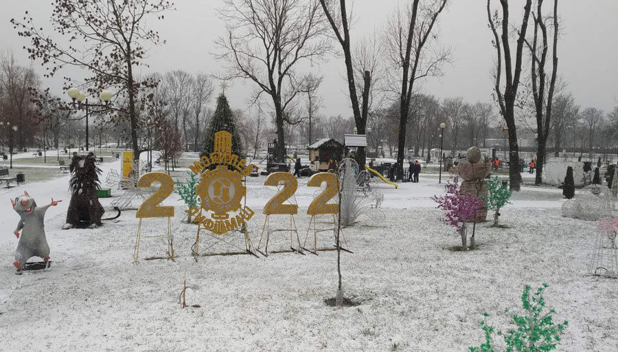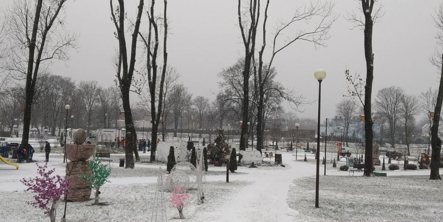 В парке Подниколье в Могилеве идут работы по праздничному оформлению новогодних площадок (2021)