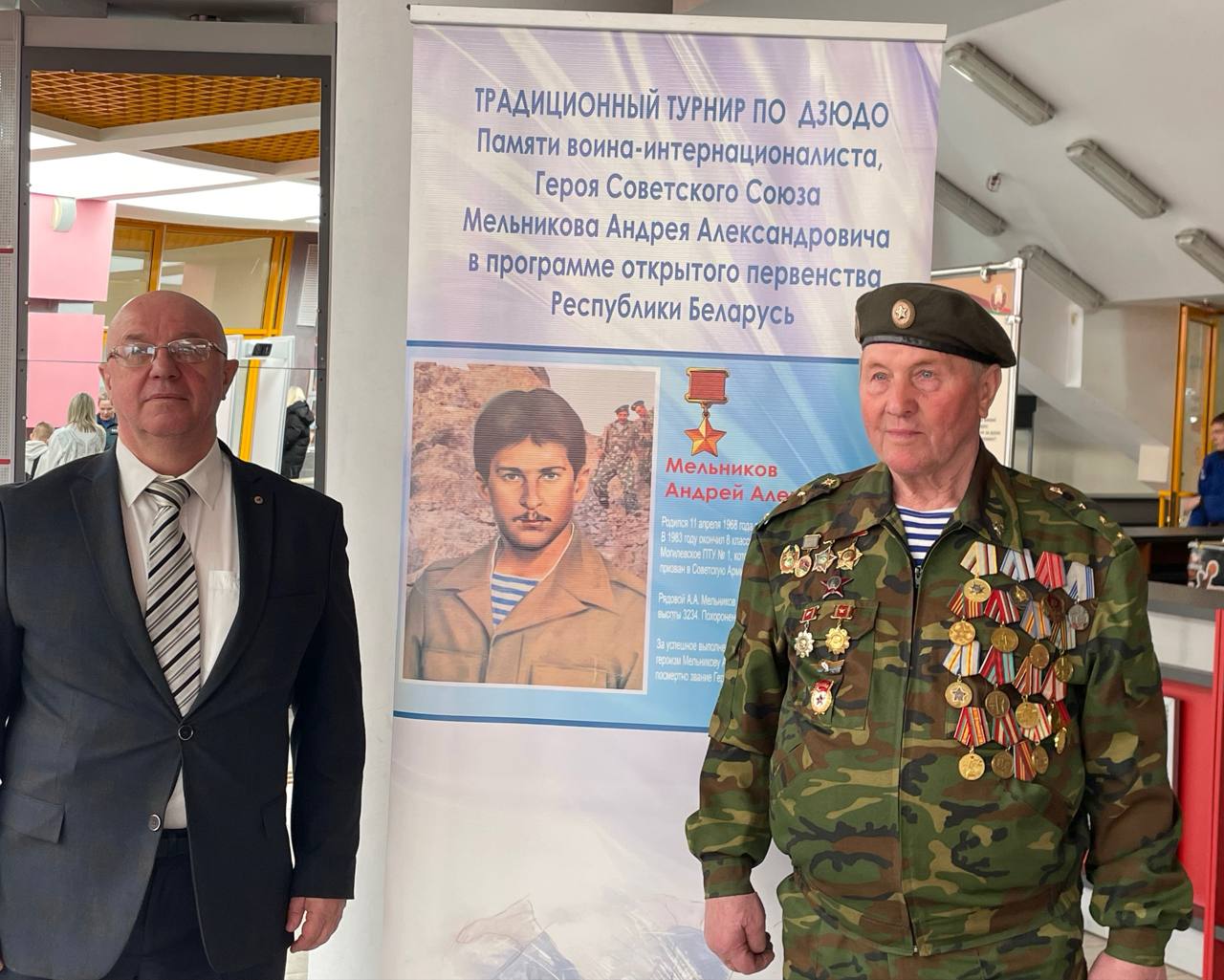 — Приветствую вас на гостеприимной земле Могилевщины. Искренне рад вашему участию в традиционном турнире по борьбе дзюдо памяти нашего земляка — Героя Советского Союза Андрея Мельникова — пулеметчика легендарной 9-й парашютно-десантной роты, достойно выполнившего на поле боя в Афганистане свой воинский долг. Растить и воспитывать патриотов своей Родины — важная государственная задача.