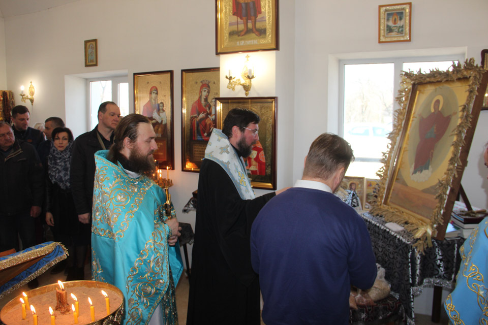 Храм выбрали не случайно: здесь в прошлом году нашла свое место единственная в епархии икона «Спорительница хлебов». Как рассказал настоятель храма иеромонах Максим (Юндил), слово «спорительница» имеет значение помощница. Поэтому в христианстве считается, что молитвы Богородице перед такой иконой помогают в обретении хлеба насущного, хорошо у «спорительницы» просить благословения перед началом какого-то дела, помощи и покровительства в получении богатых урожаев. Поэтому время для службы было определено самое подходящее: в сельхозпредприятиях вовсю идут весенние полевые работы.