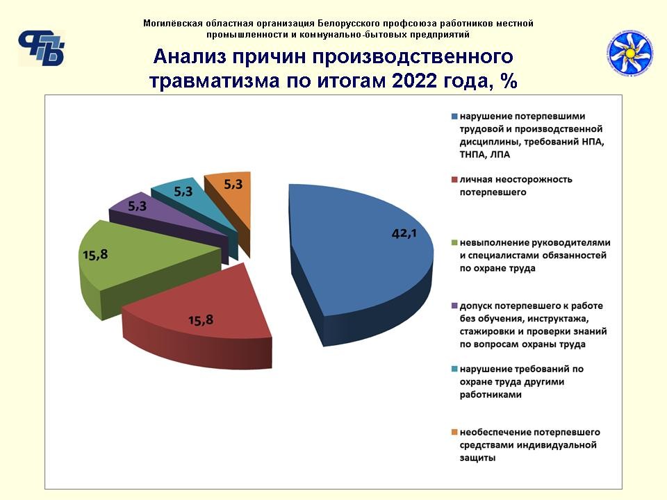 В Могилевской областной организации Белорусского профсоюза работников местной промышленности и коммунально-бытовых предприятий подвели итоги работы в сфере охраны труда за 2022 год. В частности, на заседании сообщили о результатах анализа причин производственного травматизма.