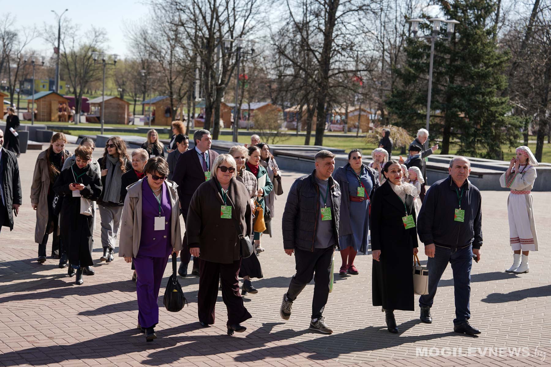 В первый день форума на открытой площадке возле Могилевского областного методического центра народного творчества и культурно-просветительной работы участников гостеприимно встретили могилевские артисты с песнями, шутками, наполненными национальным колоритом.