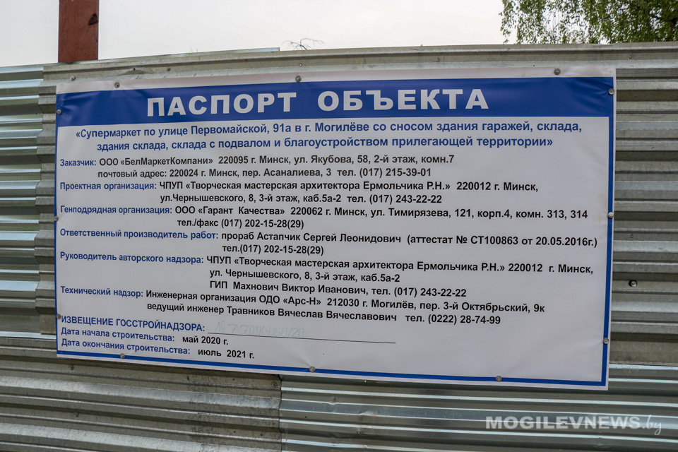 Заказчиком строительства нового супермаркета по улице Первомайской, 91а выступает ООО «БелМаркетКомпани». Это будет одноэтажное здание, которое вместе с подъездами и парковкой разместятся на участке в 0,628 га.