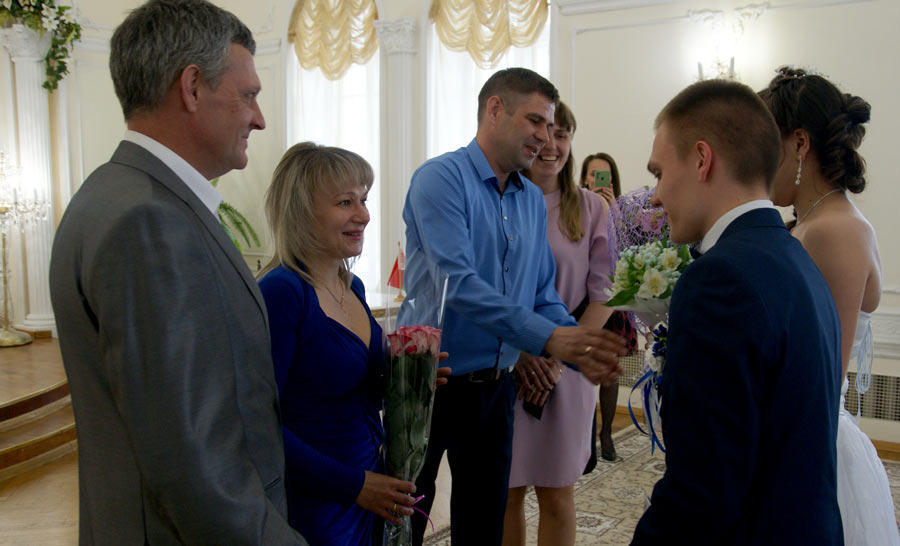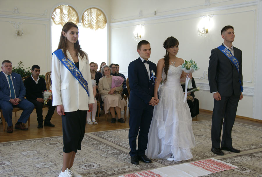 Молодожены познакомились в вузе. Даниил студент второго курса, а Валерия —первокурсница. Поздравить молодоженов пришли родные, друзья, а также педагоги и студенты вуза.