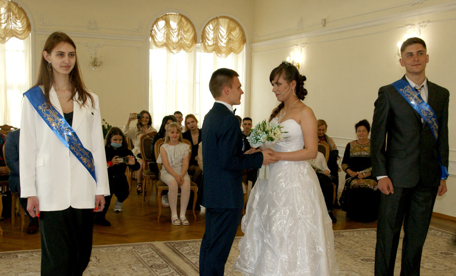 В финальный день республиканского конкурса студенческийх семей «Счастливы вместе» прошла торжественная регистрация брака молодой семьи студентов БГУТ Даниила Жешко и Валерии Бегуновой в Золотом зале отдела ЗАГС Могилёвского горисполкома.