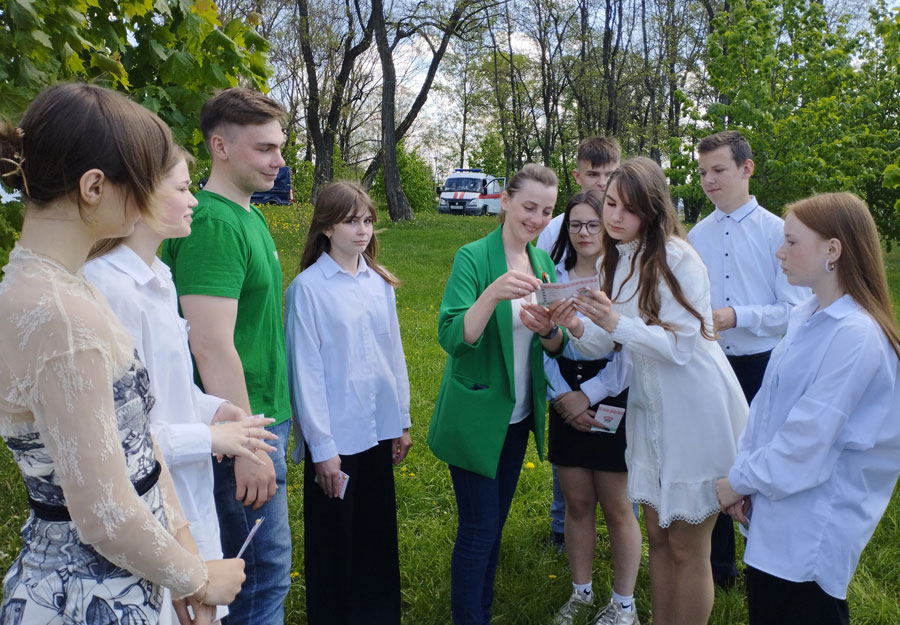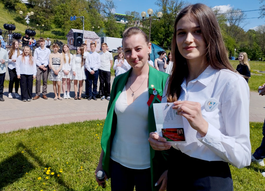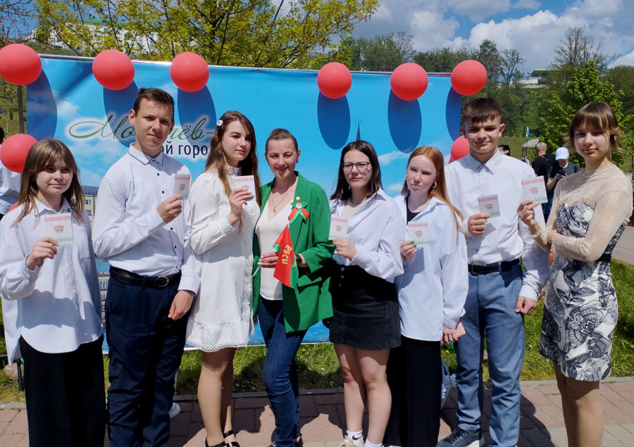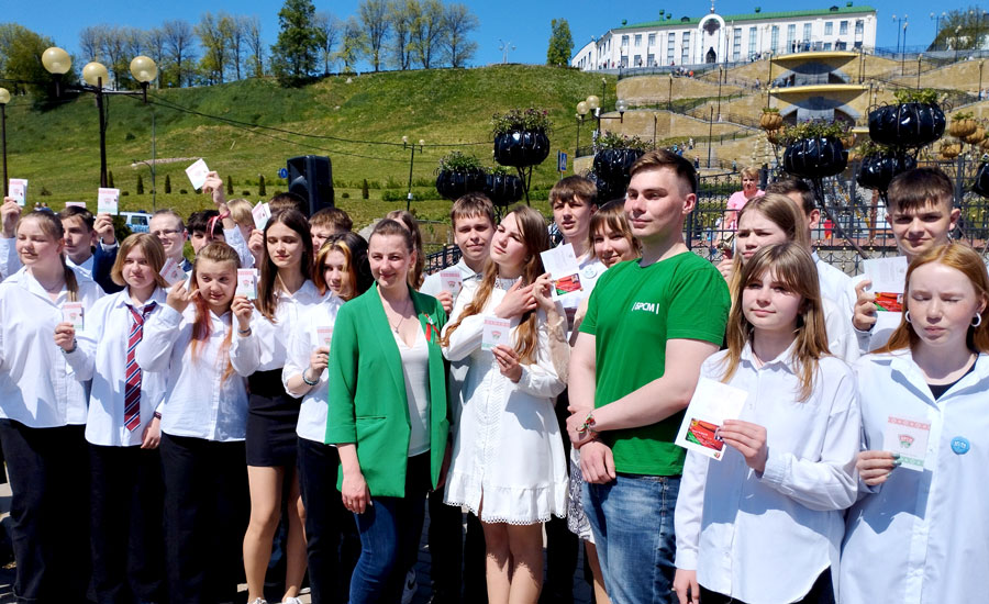 А в свою очередь Мария Самусенко, первый секретарь Могилевского городского комитета ОО «БРСМ» во время торжественного вручения билетов БРСМ поздравила молодёжь со знаковым событием и с сегодняшним праздником — Днем Государственных флага, герба и гимна Республики Беларусь.