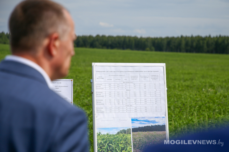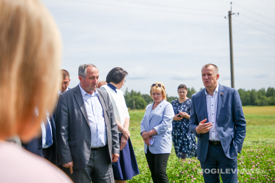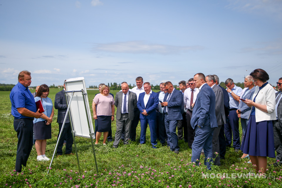 Кстати, обсуждаемые вопросы носили не только теоретический характер, но и практический. Выехав на некоторые поля Могилевского района руководители райисполкомов во главе с Анатолием Исаченко ознакомились с результатами выращивания многолетних трав беспокровным способом, возделывания вики яровой, промежуточных однолетних культур, клевера лугового.