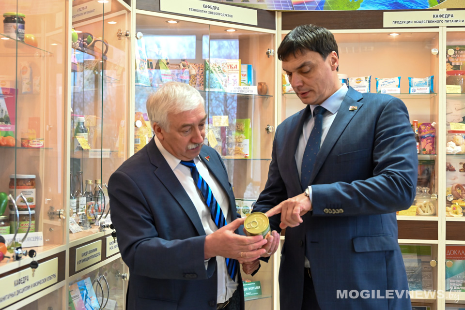В Белорусском государственном университете пищевых и химических технологий прошла информационная встреча коллектива университета с помощником Президента Республики Беларусь — инспектором по Могилевской области Сергеем Наливайко. Перед началом мероприятия Сергею Эдуардовичу организовали экскурсию по университету, во время которой он ознакомился с образовательным процессом, материально-технической базой вуза и ключевыми направлениями подготовки специалистов. Гостю продемонстрировали современные лаборатории, в которых студенты и преподаватели ведут научные исследования. В ходе экскурсии также обсудили перспективы развития образовательных программ.