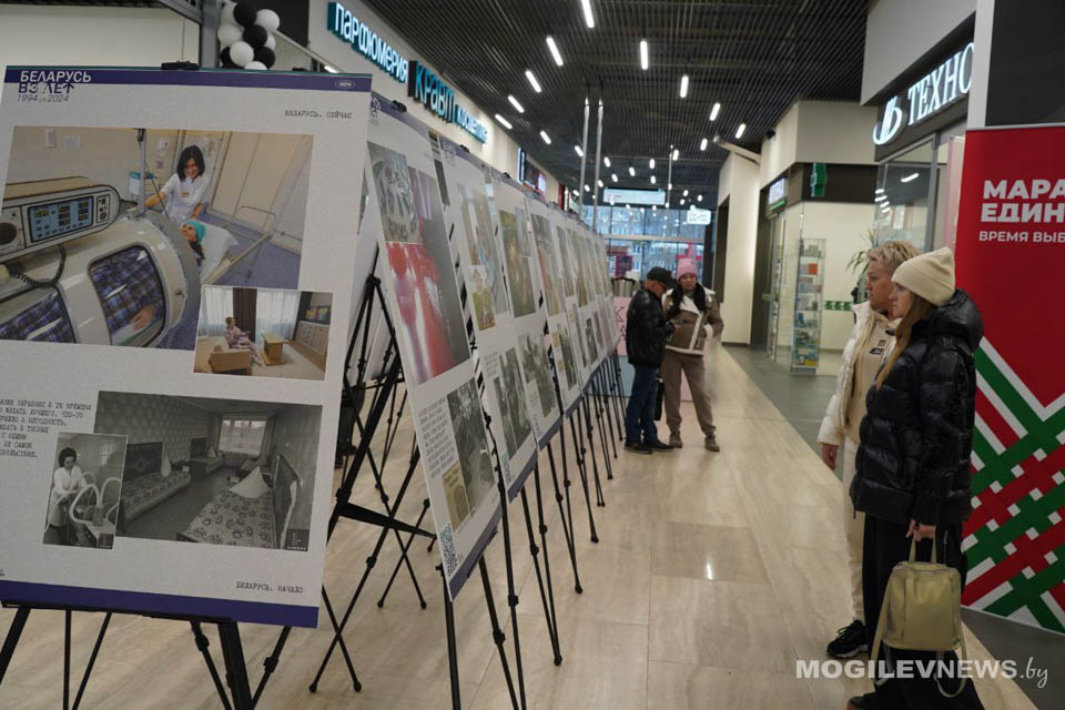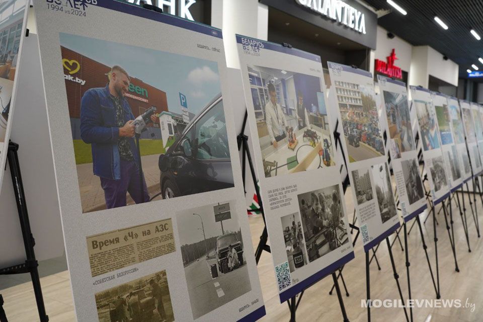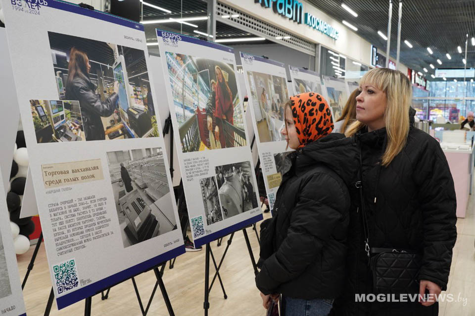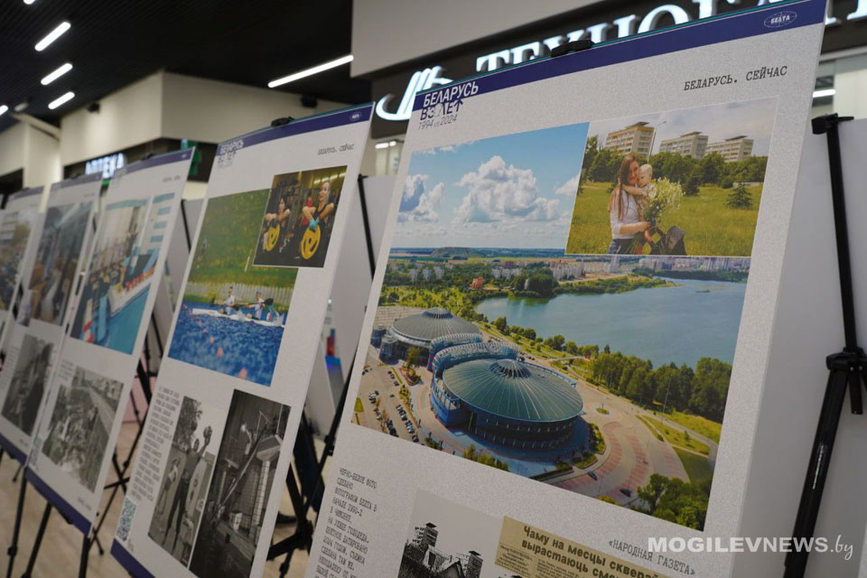 Экспозиция включила в себя 40 плакатов, на которых помимо фотографий изображены газетные вырезки с яркими говорящими заголовками. Благодаря им можно увидеть 30-летний путь развития государства: с первых лет существования суверенной Беларуси и до нашего времени.
