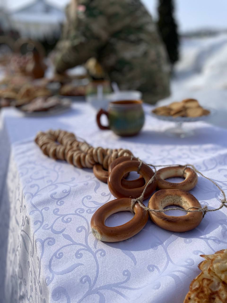 Гвоздем программы, разумеется, стали блины. Организаторы отметили, наши женщины-военнослужащие испекли более 1000 блинов с различными начинками, каждая постаралась от души. Тонкие и пышные, на кефире и на молоке — каждое угощение было приготовлено по уникальному семейному рецепту.