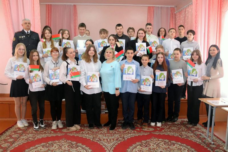 В рамках реализации Президентской программы «Дети Беларуси» стало хорошей традицией гражданам, достигшим 14-летнего возраста, дарить книгу «Я – гражданин Республики Беларусь». Не стало исключением и это торжественное мероприятие. Учащимся 7-9 классов были вручены книги от Президента Республики Беларусь.
