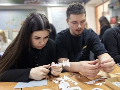 Также для всех желающих студенты БГУКИ провели мастер-классы. Участники мероприятия сделали закладки для книг в технике тиснения и приобщились к традиционному белорусскому искусству вырезания из бумаги — вытинанке.