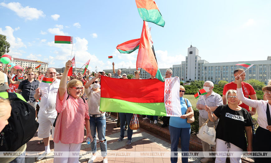 В белорусскую столицу 16 августа приехали жители со всех регионов страны. Люди собрались в Минске на митинг в поддержку мира, безопасности и спокойствия в Беларуси.
