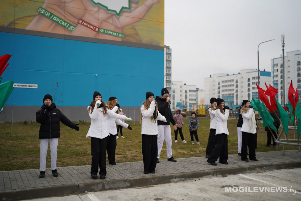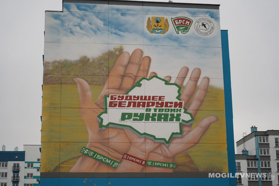 Арт-объект «Будущее Беларуси в твоих руках» изобразили на стене новостройки на улице Народного единства в рамках «Марафона единства».