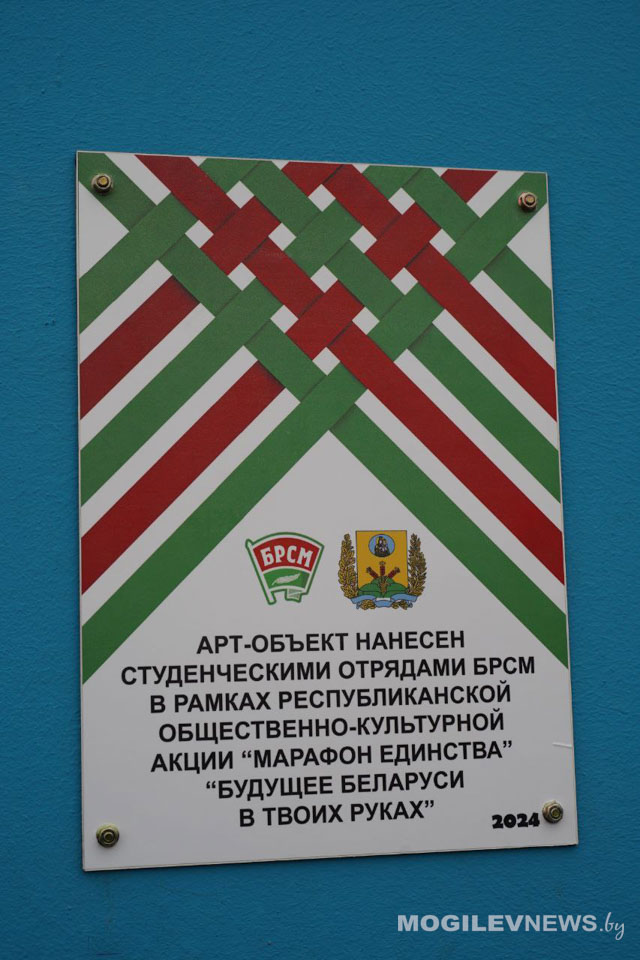 На стене дома не просто так нарисована карта Беларуси, которую держат три руки — детская, женская и мужская. Арт-объект символизирует мир и порядок в нашей стране и несет в себе важную мысль: будущее государства находится исключительно в наших руках.