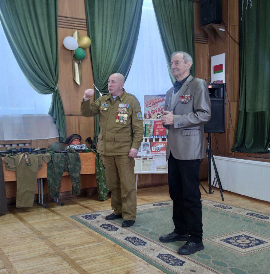 Программа была обширная: исторический экскурс, музыкальные композиции, демонстрация выставки, привезенной средней школой № 21 г. Могилева, и открытый диалог ветеранов войны в Афганистане с учащимися. Также собравшиеся почтили память погибших воинов минутой молчания.