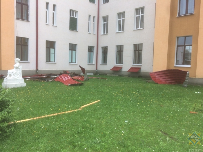 Сильный ветер в Горках 16 июля ломал деревья и повредил кровлю корпуса больницы.