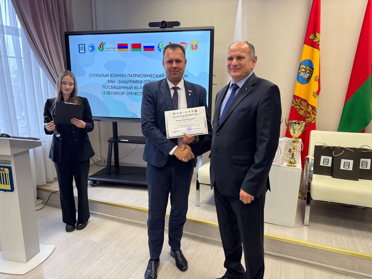 В Белорусско-Российском университете прошла торжественная церемония закрытия Открытого военно-патриотического марафона, посвященного 80-летию Победы в Великой Отечественной войне с целью формирования у молодежи активной гражданской позиции, воспитания патриотизма, уважения к историческому прошлому, а также развития сотрудничества между молодежью разных стран. Главный организатор — ОИВР университета.