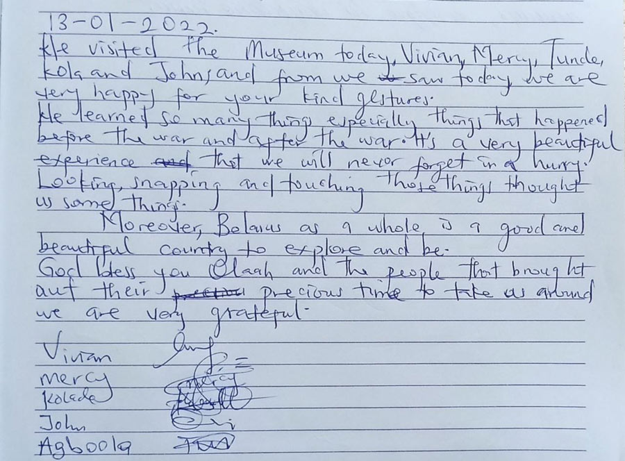 — Некоторые объекты всколыхнули наше сознание и память. Беларусь — это та страна, которую хочется узнать и жить в ней. Мы ценим вашу заботу и помощь, которую вы оказываете нам! — написали мигранты из Нигерии в книге отзывов.