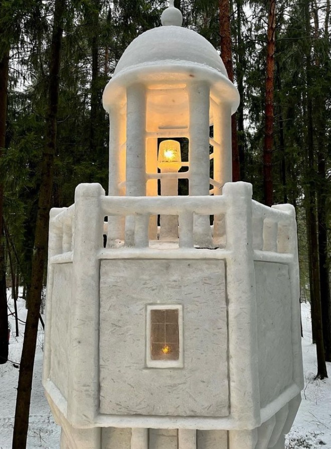 Еще одна снежная скульптура минского мастера Ивана Карпицкого появилась в Могилевском районе (на территории базы отдыха организации «Благо», деревня Салтановка). 9-метровый «Маяк надежды» снежных дел мастер создавал 17 дней. Для реалистичности скульптура дополнена лампой с ледяным плафоном.