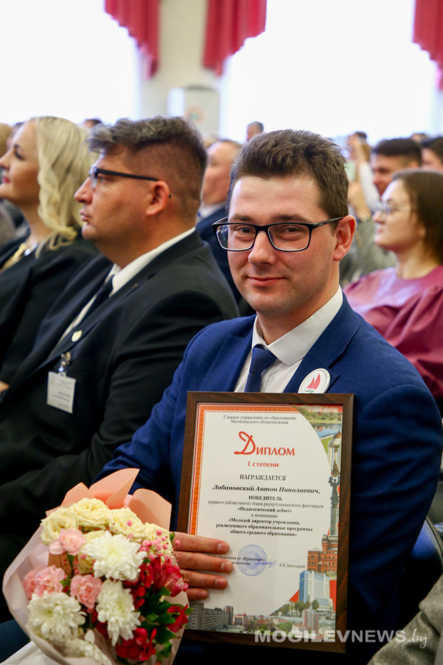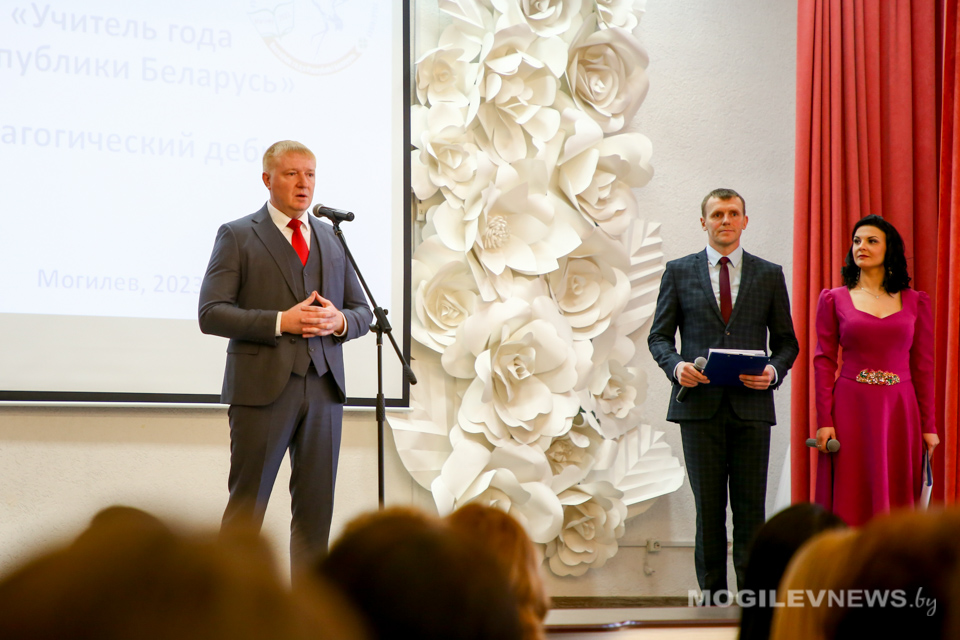 Также с поздравительной речью обратился к педагогам победитель республиканского конкурса профессионального мастерства «Учитель года-2004» Игорь Якименко: «Сегодня каждый стоящий на сцене — победитель. Я всегда готов помочь каждому из вас. Звоните, пишите — я открыт для диалога, который может быть необходим вам для дальнейшей подготовки. Могилёвская область идёт вперёд: она побеждает в олимпиадах, она побеждает в конкурсах исследовательских работ. Наверное, настало её время».