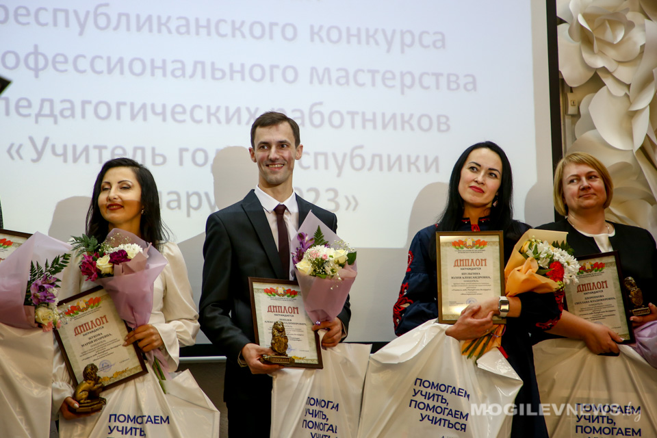В актовом зале УО «МГОИРО» состоялась церемония награждения педагогов Могилевской области за победы в различных номинациях. Поздравляли участников почётные гости: первый заместитель начальника главного управления по образованию Могилевского областного исполнительного комитета Игорь Лошкевич, ректор УО «МГОИРО» Михаил Жудро, проректор по учебной работе МГУ имени А.А. Кулешова Владимир Ясев, проректор по научной работе БРУ Виктор Пашкевич и др.