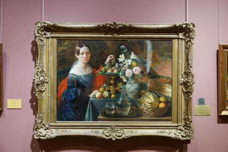 «Портрет неизвестной с цветами и фруктами» Ивана Хруцкого – одна из самых узнаваемых работ из коллекции Национального художественного музея, знакомая многим по открыткам, маркам и даже денежным купюрам. В диджитал-интерпретации зрители смогут рассмотреть картину в деталях и увидеть, как меняется выражение лица загадочной незнакомки, как она отрывает виноград, пробует его и поправляет цветы в вазе.