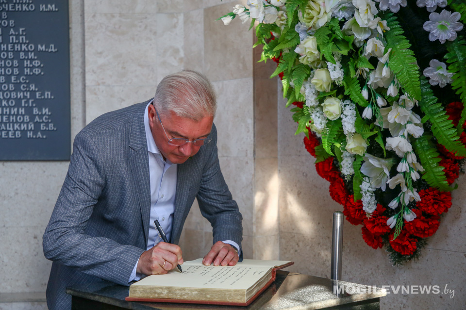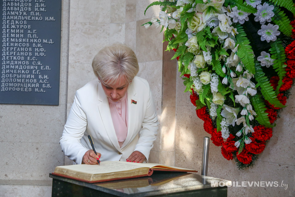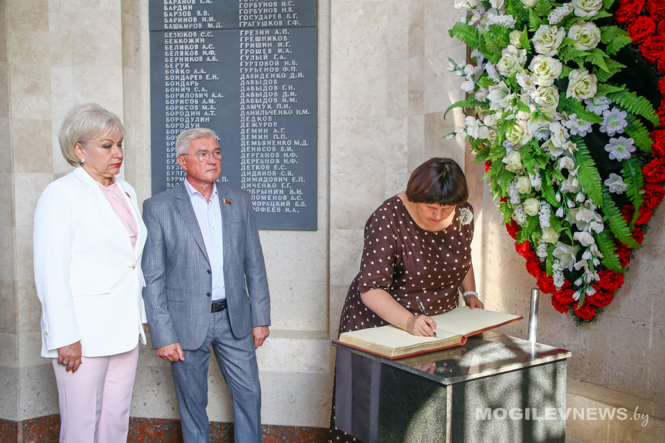 18 июля в Могилеве прошло заседание Комиссии Парламентского Собрания Беларуси и России по труду, социальной политике и здравоохранению. Перед началом пленарной части делегаты, в числе которых председатель Комиссии Парламентского Собрания по труду, социальной политике и здравоохранению, член Комитета Совета Федерации по международным делам Елена Афанасьева (РФ); зампредседателя Комиссии, председатель Постоянной комиссии Палаты представителей Национального собрания Республики Беларусь по труду и социальным вопросам Ирина Костевич (РБ); член Комиссии, председатель Постоянной комиссии Палаты представителей Национального собрания Республики Беларусь по здравоохранению, физической культуре, семейной и молодежной политике Валерий Малашко (РБ) и член Комиссии и Комитета Государственной Думы по развитию Дальнего Востока и Арктики Николай Новичков (РФ), возложили цветы и венки на Буйничском поле и почтили память жертв Великой Отечественной войны минутой молчания.