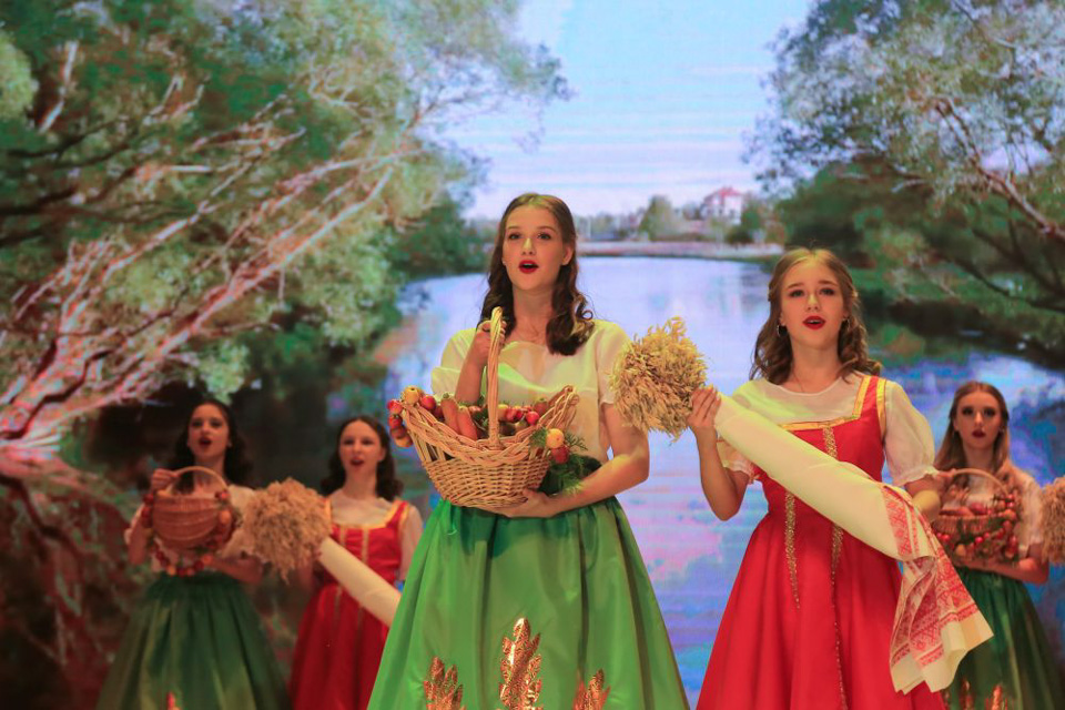 Праздничное мероприятие открыла яркая музыкальная композиция, каждый элемент которой был знаковым символом. От флагов Беларуси, Горецкого района и БГСХА – до снопов ржи урожая нынешнего года и плетеных корзин с ароматным, душистым хлебом в руках исполнительниц хореографического номера.