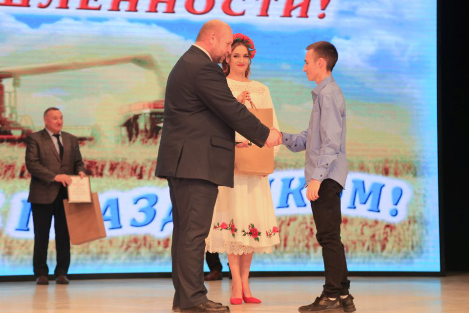 Кульминацией вечера стало приглашение на сцену молодых специалистов сельского хозяйства района, которые только что приступили к работе после окончания вузов, в том числе и БГСХА. К ним обратился Николай Григорьевич Блохин. Он пожелал этим молодым юношам и девушкам достойно нести трудовую эстафету славы горецкой земли.