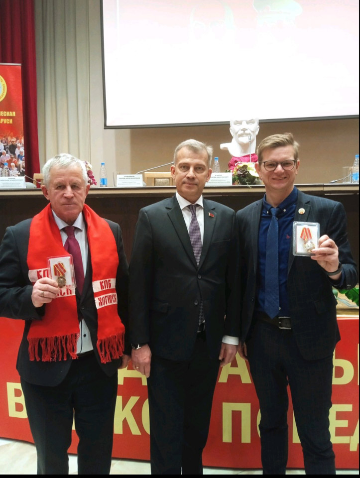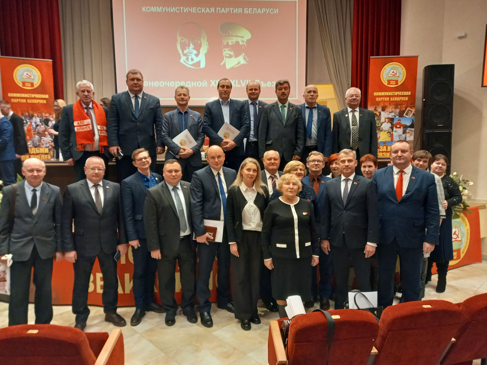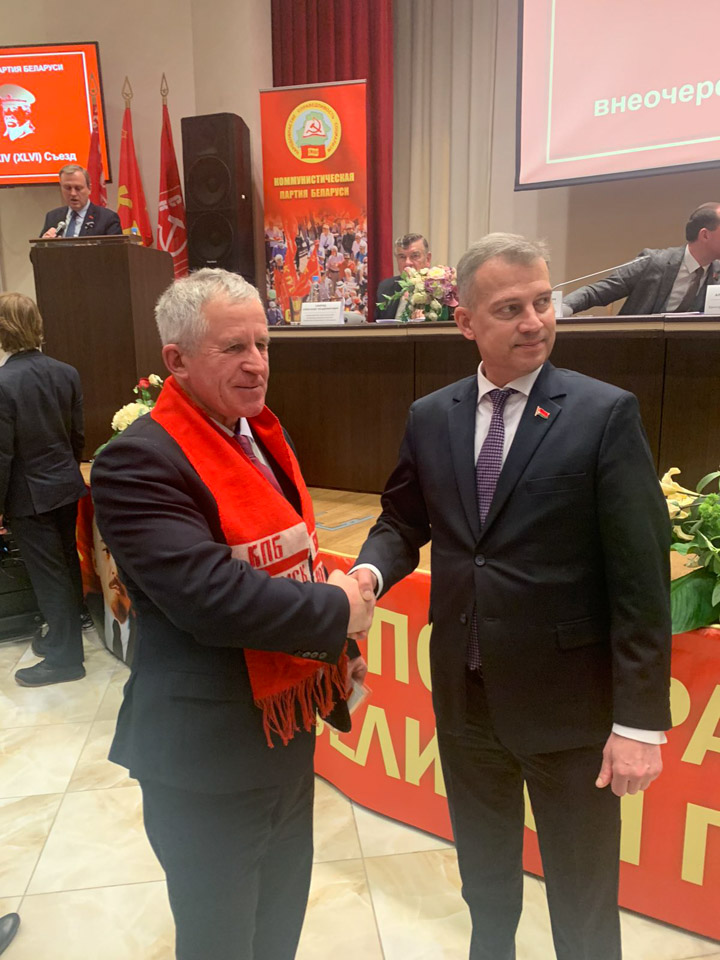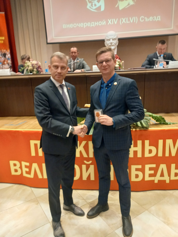 В завершение съезда прошло награждение коммунистов. В их числе и представители Могилевщины: первые секретари Хотимской и Чаусской районных организаций КПБ Александр Лейчинский и Денис Никифоров. Они награждены памятными медалями ЦК Коммунистической партии Российской Федерации.