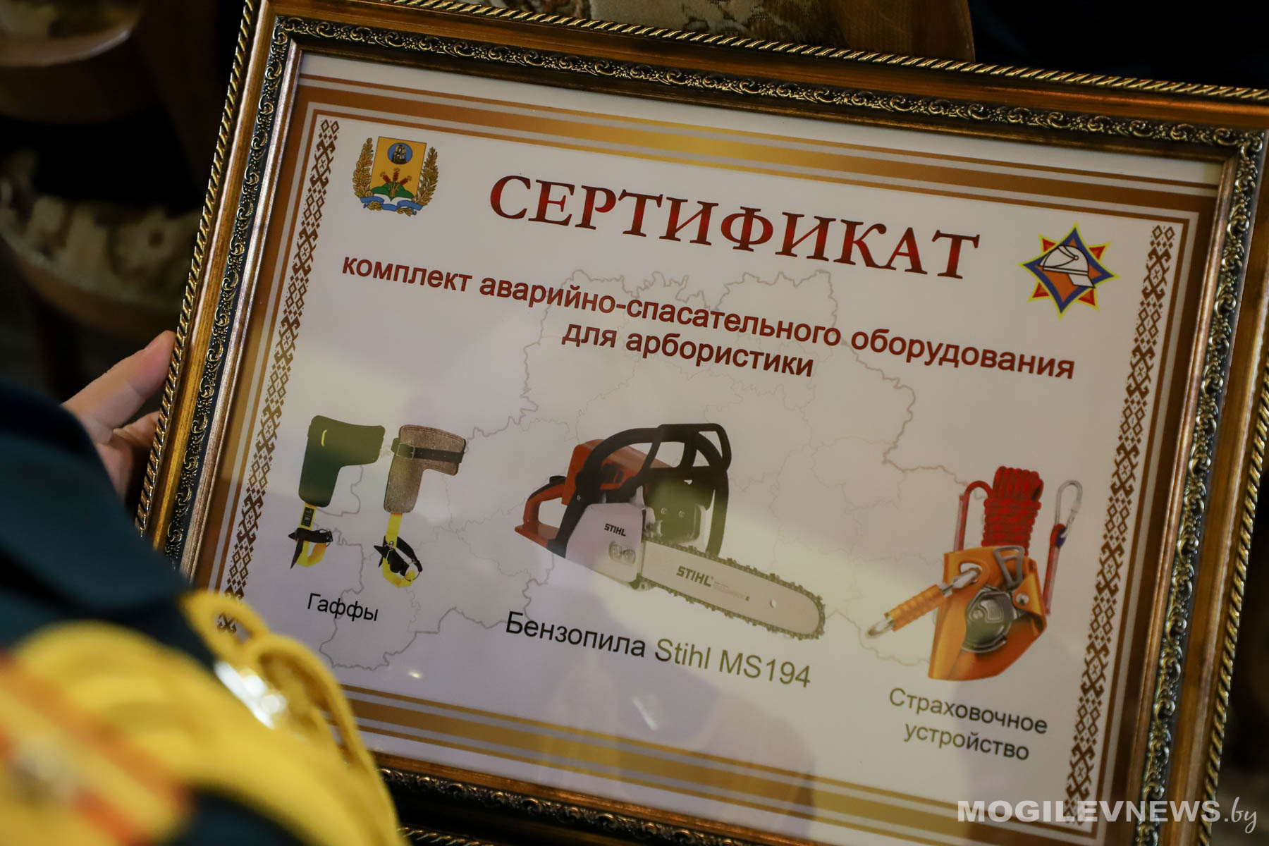 Кроме того, был вручен сертификат на комплект снаряжения для арбористики пожарному аварийно-спасательному отряду Могилевского областного управления МЧС. Это позволит специалистам еще эффективнее выполнять сложные задачи по работе на высоте в условиях плотной застройки и лесных массивов.