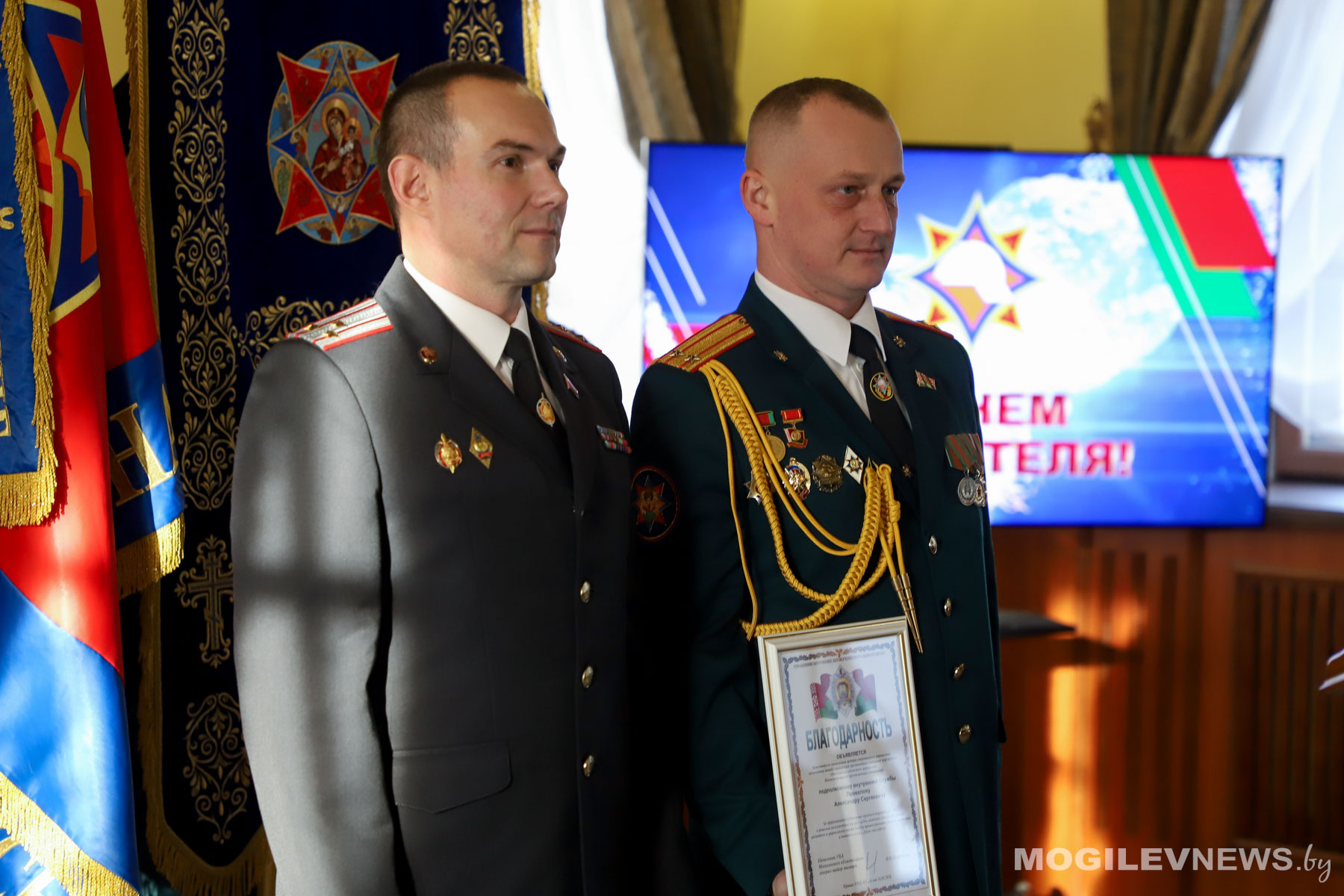 капитану внутренней службы Дмитрию Кулаеву (Могилевский РОЧС) и старшему прапорщику внутренней службы Петру Кадушкину (Могилевский ГОЧС).