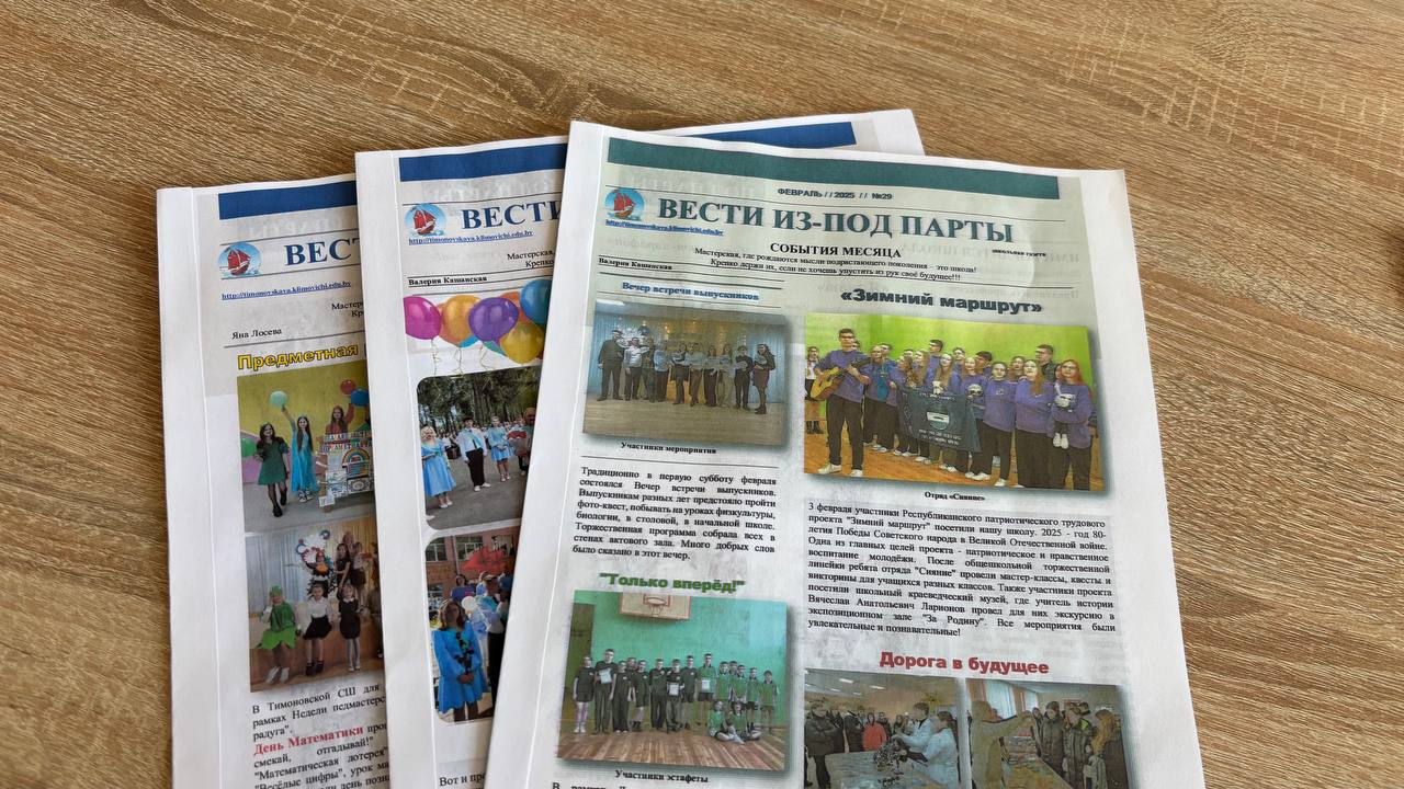 Однако гости были приятно удивлены, узнав, что приехали не в простую школу, а в настоящий медиахолдинг. Оказывается, тимоновские школьники не ограничиваются выпуском печатной газеты «Вести из-под парты». Юнкоры успешно запустили собственное школьное телевидение и радио! Передачи «Школьник ТВ», рассказывающие о ярких событиях учебного заведения, уже выходят в эфир местного климовичского телевидения.