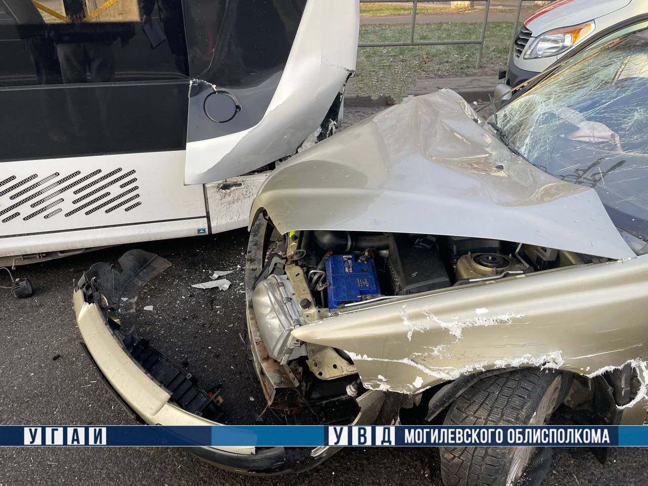 В Могилеве погрузчик протаранил Volvo, который откинуло в троллейбус: пострадавших нет