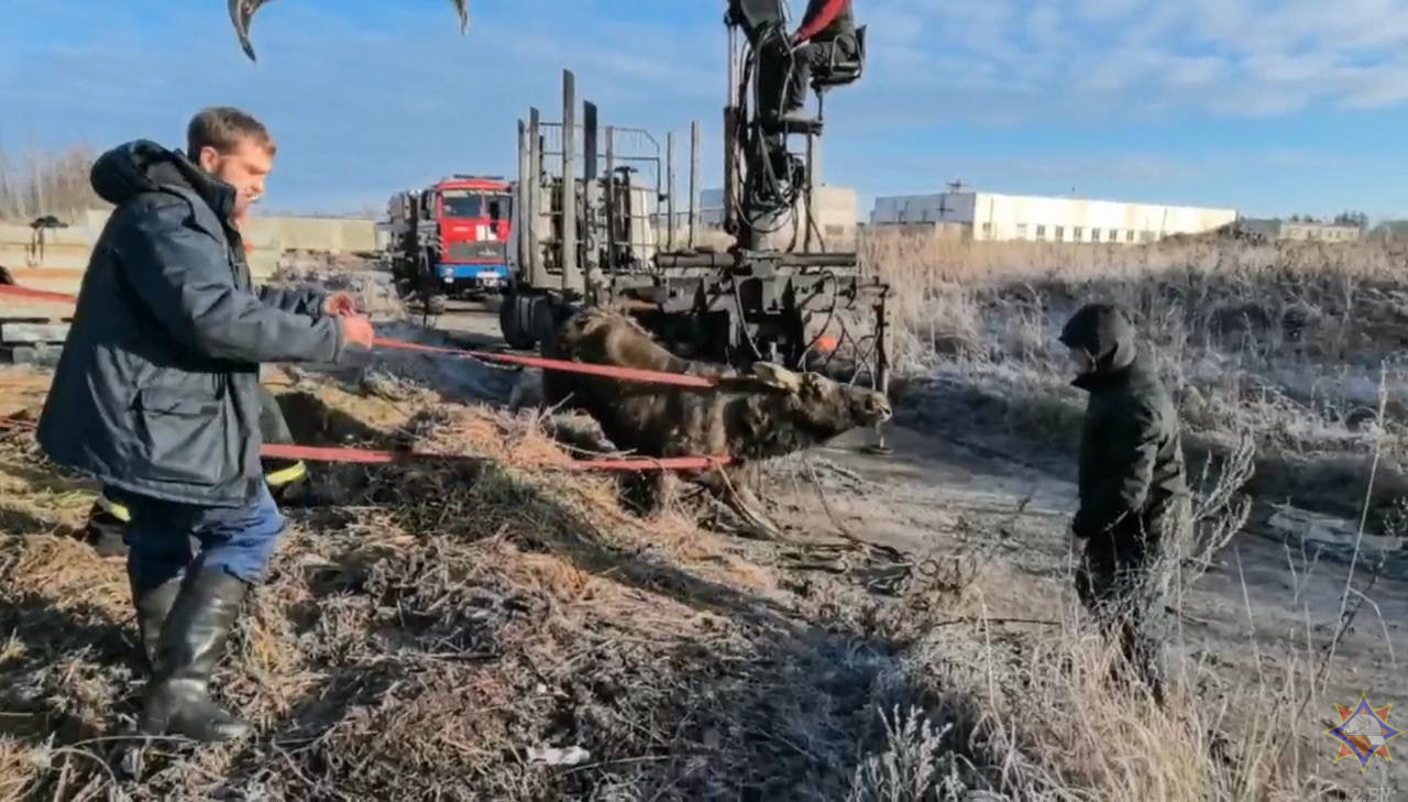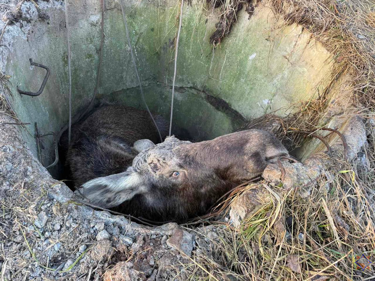 Лось провалился в колодец под Могилевом. Рассказываем, как спасали гиганта