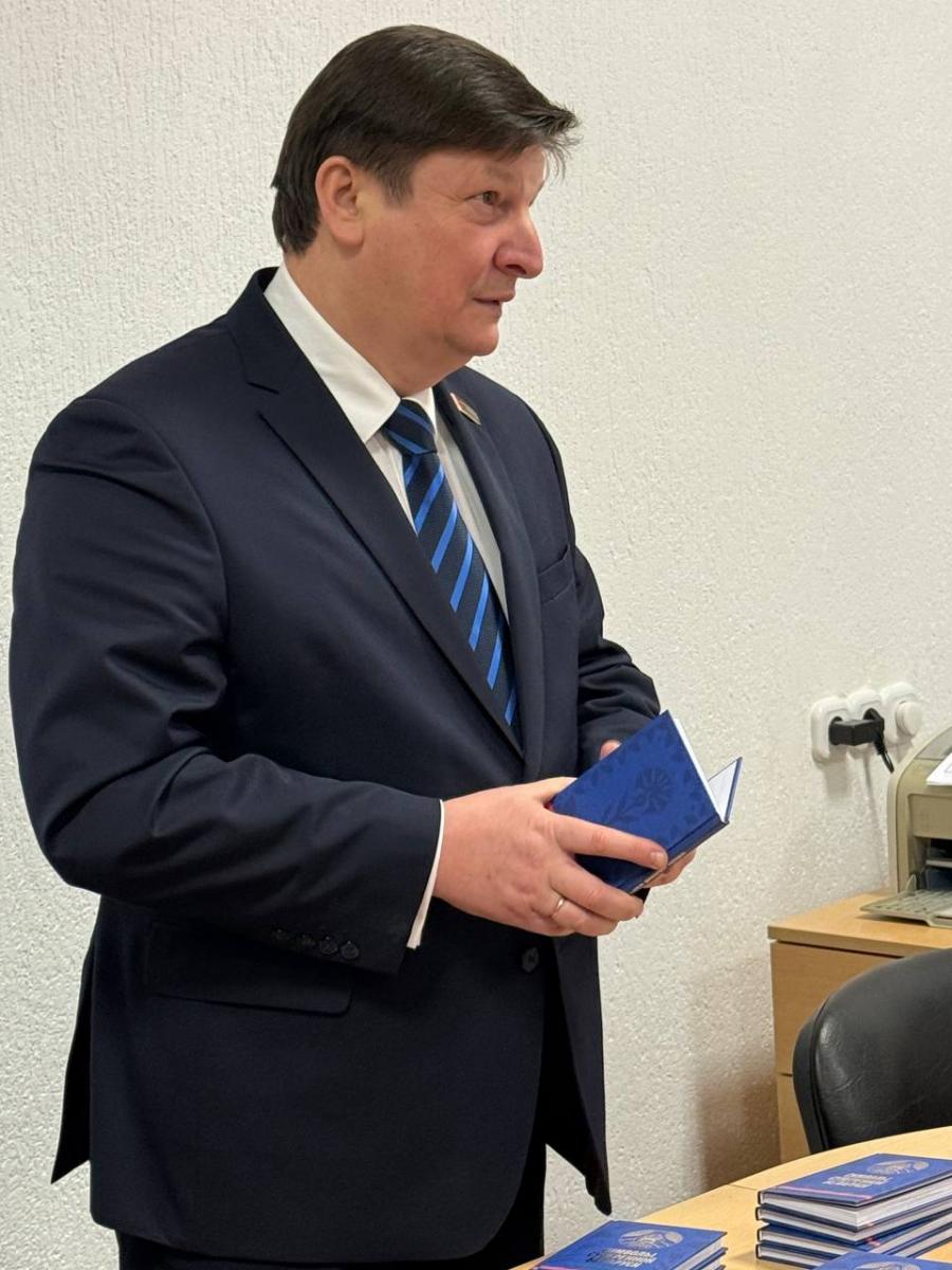 Игорь Марзалюк сегодня также поздравил ребят, впервые принимающих участие в выборах, на участке для голосования № 62 в МГУ им. А.А. Кулешова и подарил им издание «Символы суверенной Беларуси» на память о значимом событии в их жизни.
