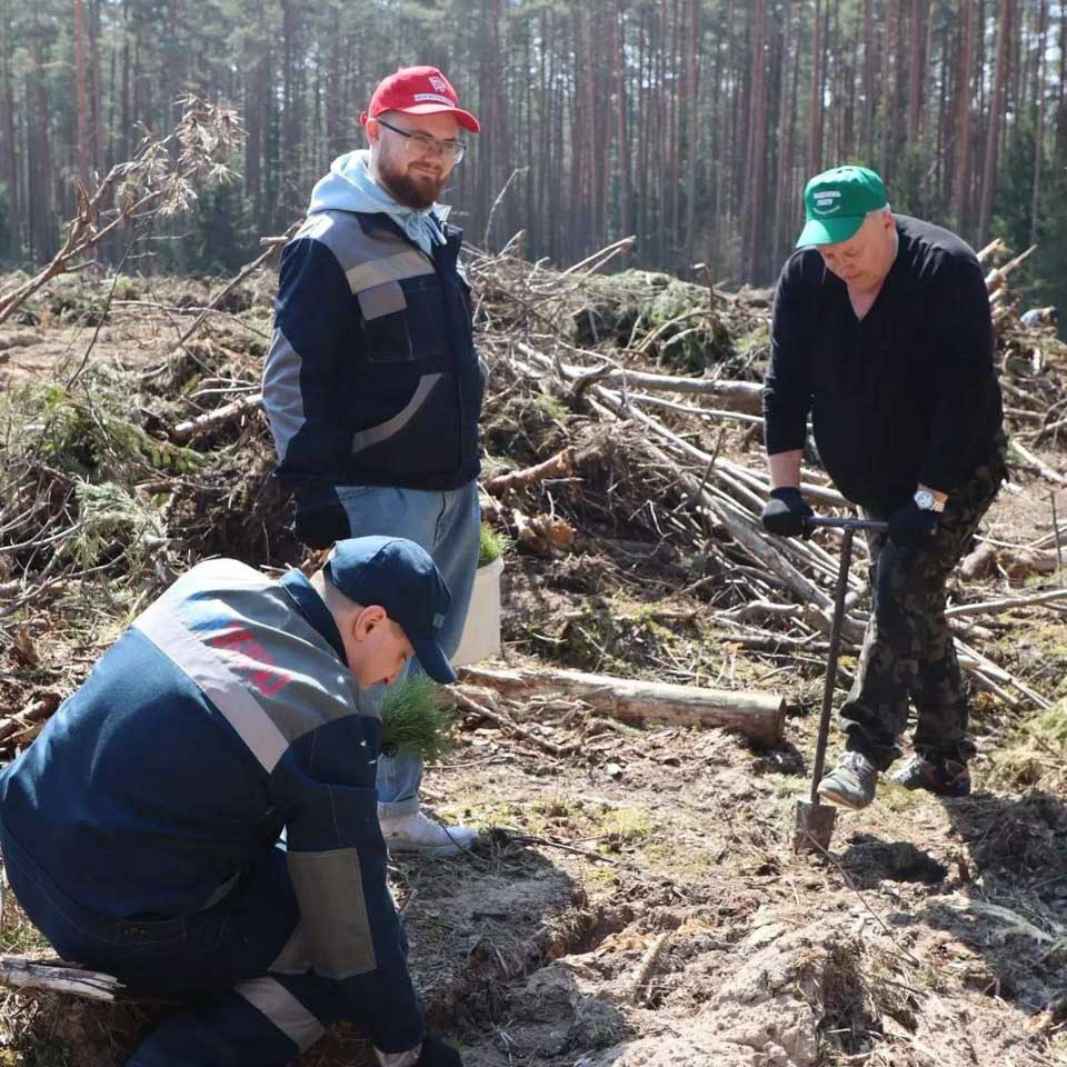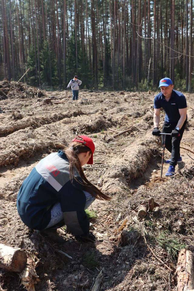 Работники предприятия совместно с членом Совета Республики Национального собрания Республики Беларусь, генеральным директором ГПО «Белтопгаз» Алексеем Кушнаренко высадили ели на территории Белыничского лесничества на лесосеке.