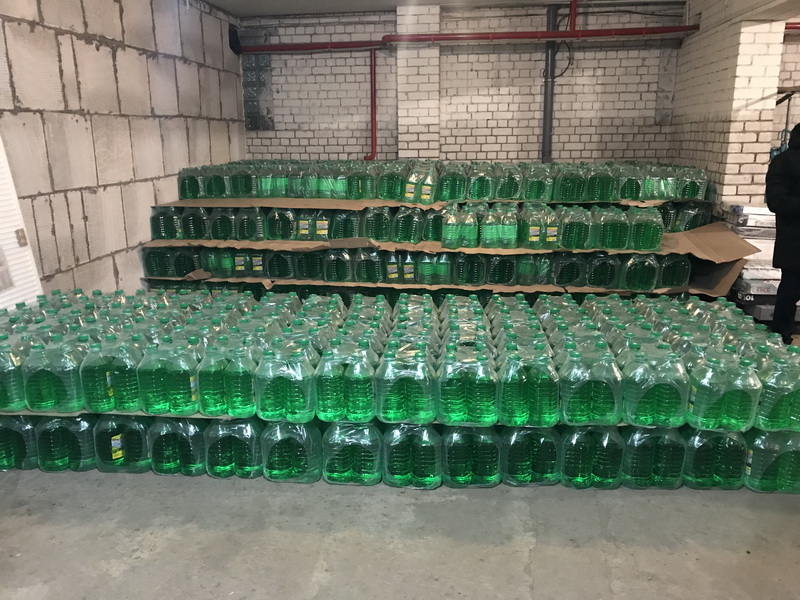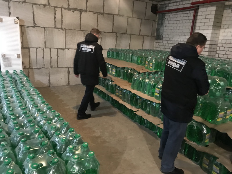 При обследовании по улице Габровской в складского помещения, принадлежащего могилевскому обществу с ограниченной ответственностью, было обнаружено 6350 литров спиртосодержащей жидкости (стеклоомыватель «Обзор») стоимостью 5,1 тыс. рублей производства Российской Федерации. 5-литровые ПЭТ-бутылки оказались без идентификационных белорусских знаков.