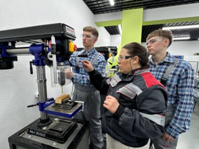 В слесарной мастерской на новом оборудовании ребятам интересно проводить техническое обслуживание автомобилей. А в учебно-производственной мастерской на новых станках ребята осваивают основы слесарных работ, учатся сверлить металл, затачивают сверло, подготавливают инструмент. Она оснащена видеокамерами, дающими возможность удаленно родителям видеть, как их ребенок выполняет задание.